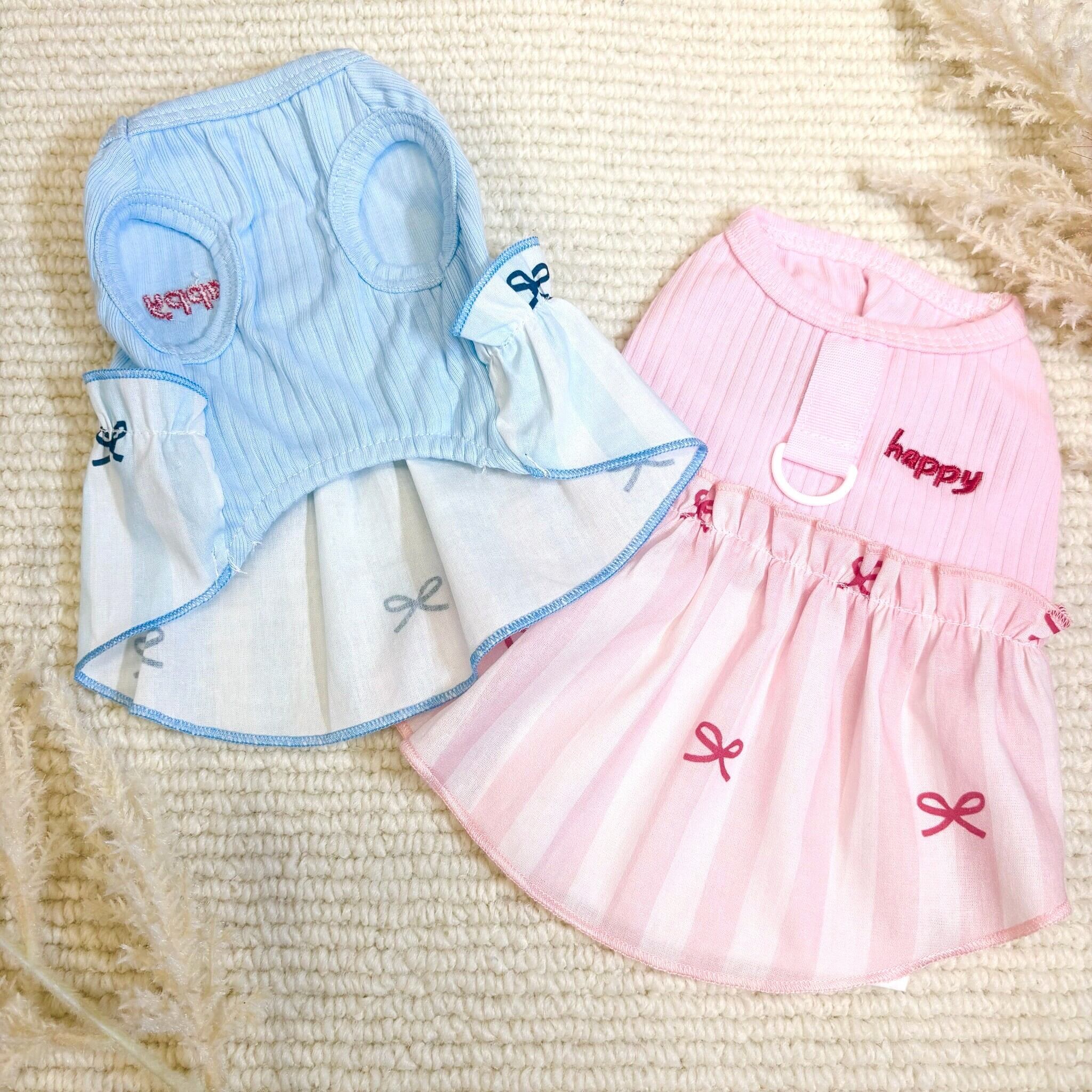 【ドッグウェア】 リボン柄ワンピース リード穴付き 犬 服
