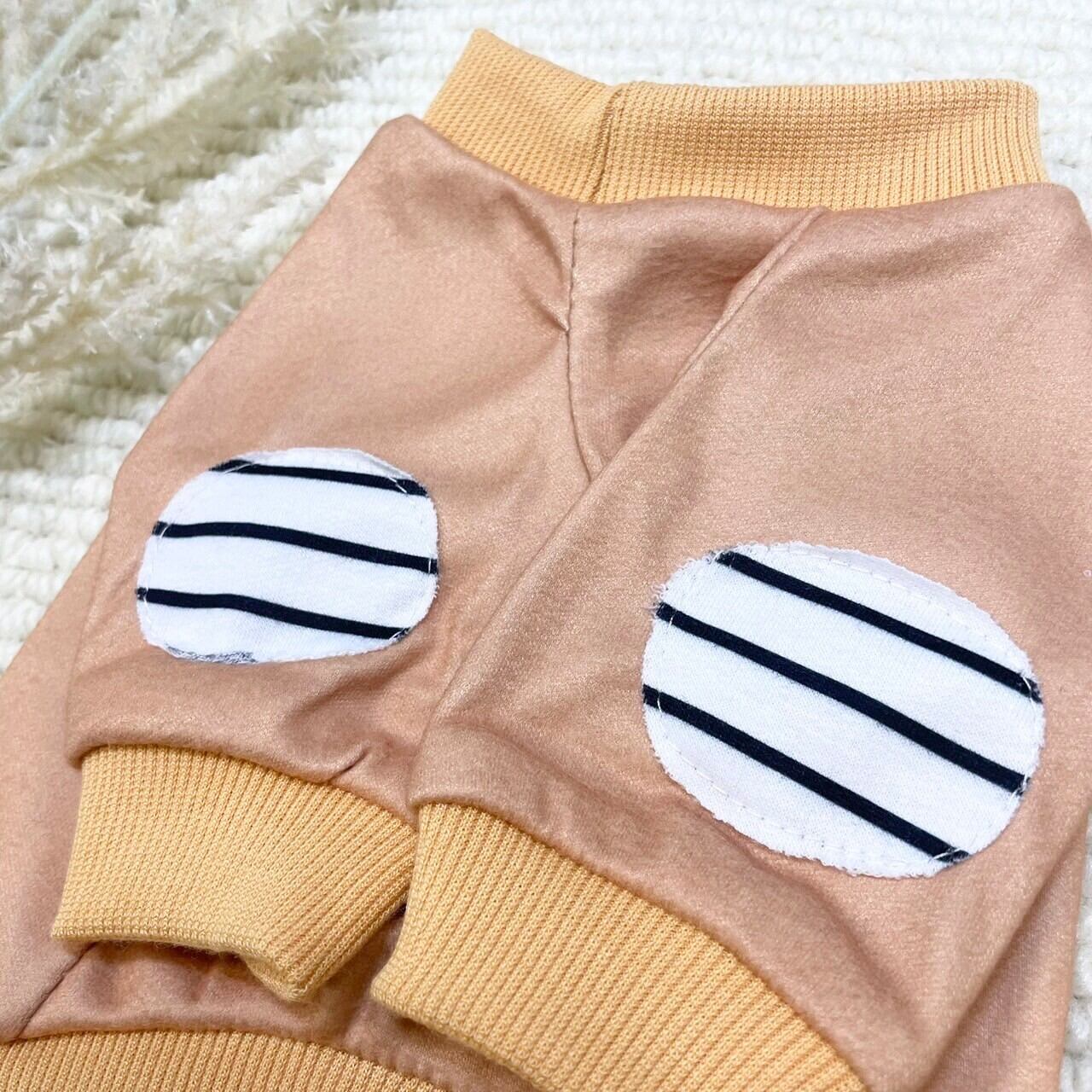 【ドッグウェア】袖ボーダーパッチ スウェット風Tシャツ 犬服